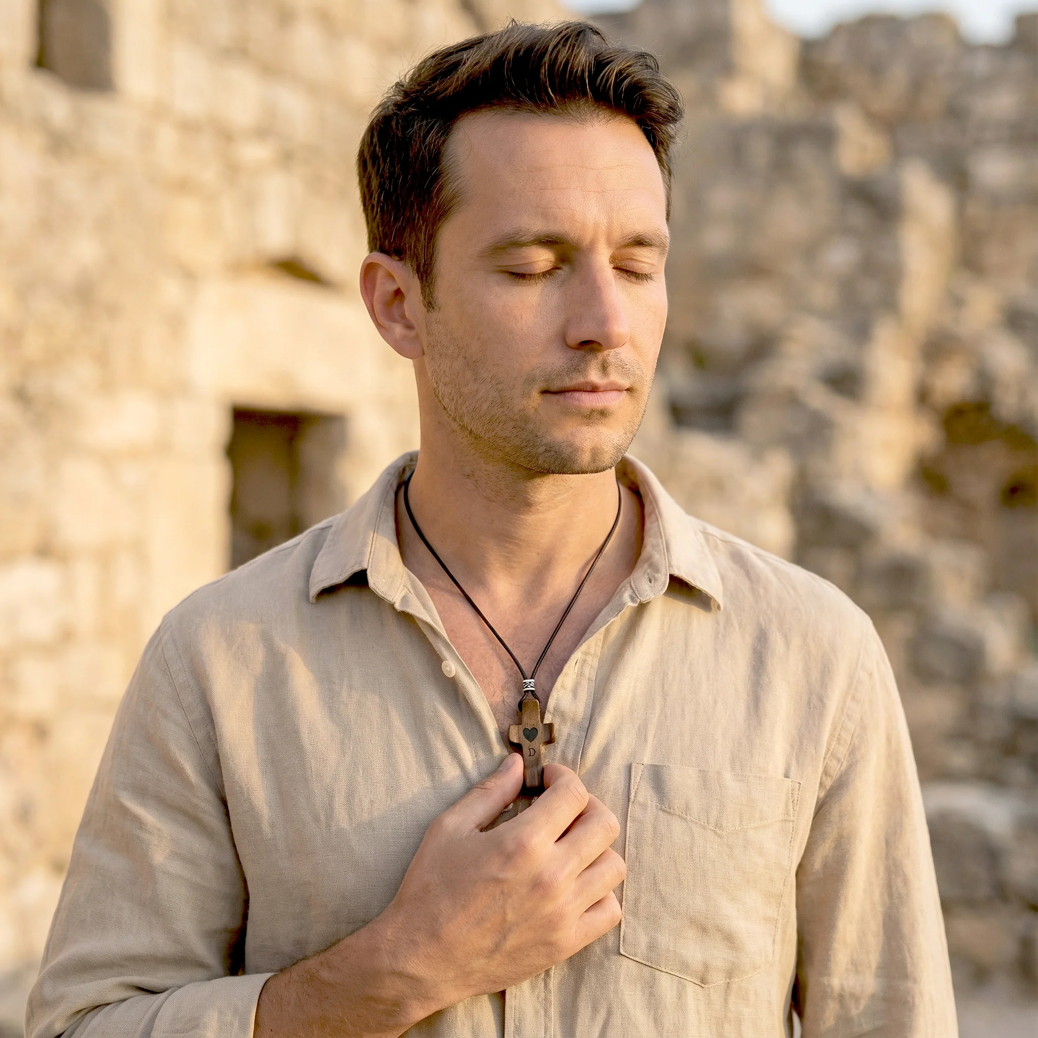 Este colgante de cruz, elaborado en madera de nogal natural, es una pieza única diseñada para acompañarte y transmitir una conexión profunda. La madera de nogal aporta un tono cálido y noble, con vetas que hacen que cada cruz sea irrepetible. Ninguna es igual a otra, y eso es parte de su magia.