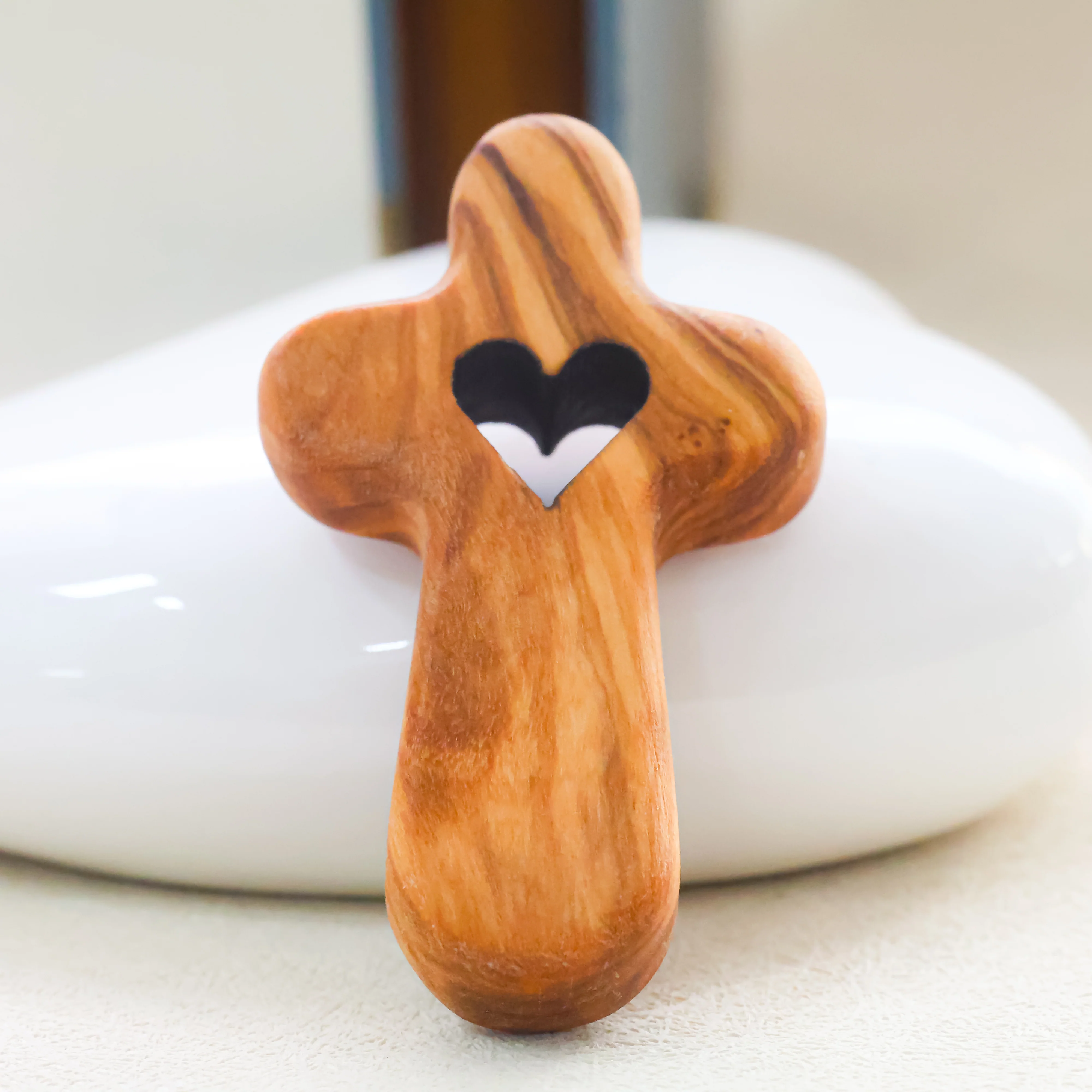 Cruz de Madera con Corazón Tallado | Hecho a mano en madera de olivo.